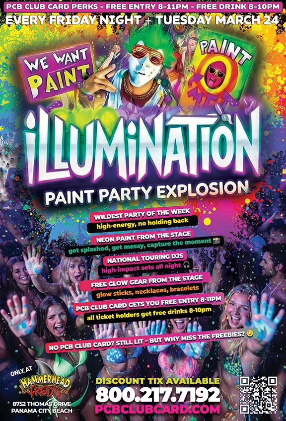 The PCB Club Card gets you FREE ENTRY to Spring Break’s largest events and theme parties! This is the ONE CARD that includes PCB’s ONLY SPRING BREAK SUPERCLUB – HAMMERHEAD FRED’s!